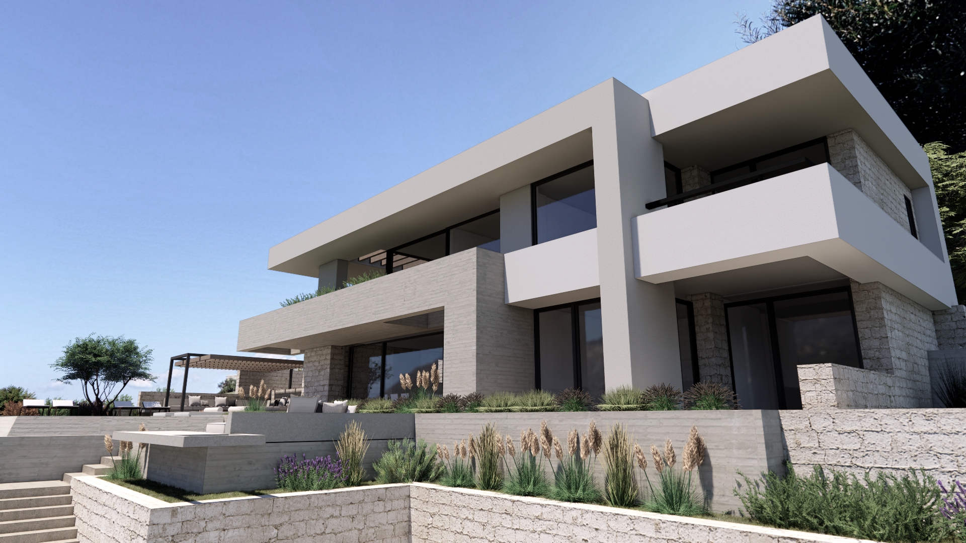 Η μελέτη αφορά την ανέγερση διώροφης κατοικίας με υπόγειο και πισίνα. Λόγω του ότι το κτίριο βρίσκεται εκτός σχεδίου και σε ένα περιβάλλον τυπικό της Κρητικής υπαίθρου, έχει επιλεχθεί μια αρχιτεκτονική λύση με χώρους με μεγάλα ανοίγματα τα οποία ενοποιούν τον εσωτερικό με εξωτερικό χώρο και με υλικά και χρώματα τα οποία εναρμονίζονται με το τοπίο. Το κτίριο έχει γραμμική ανάπτυξη ώστε όλοι οι χώροι να έχουν θέα προς τον κόλπο της Σούδας και έχει τοποθετηθεί σε σημείο όπου δεν υπάρχει έντονη φυσική κλίση στο έδαφος, ώστε να γίνει η μικρότερη δυνατή παρέμβαση στο φυσικό περιβάλλον. Το ισόγειο έχει χωριστεί λειτουργικά σε 2 τμήματα μέσω μίας εσοχής στο σώμα του κτιρίου, όπου στο ανατολικό τμήμα τοποθετούνται οι κοινόχρηστοι χώροι, ενώ στο δυτικό, οι ιδιωτικοί. Το δυτικό τμήμα είναι διώροφο, ενώ το ανατολικό είναι ισόγειο και το δώμα του αποτελεί φυτεμένη βεράντα του ορόφου.
