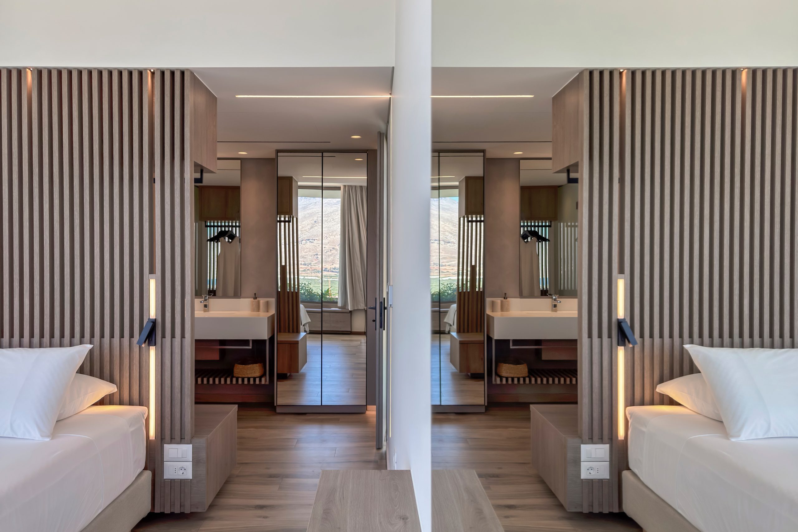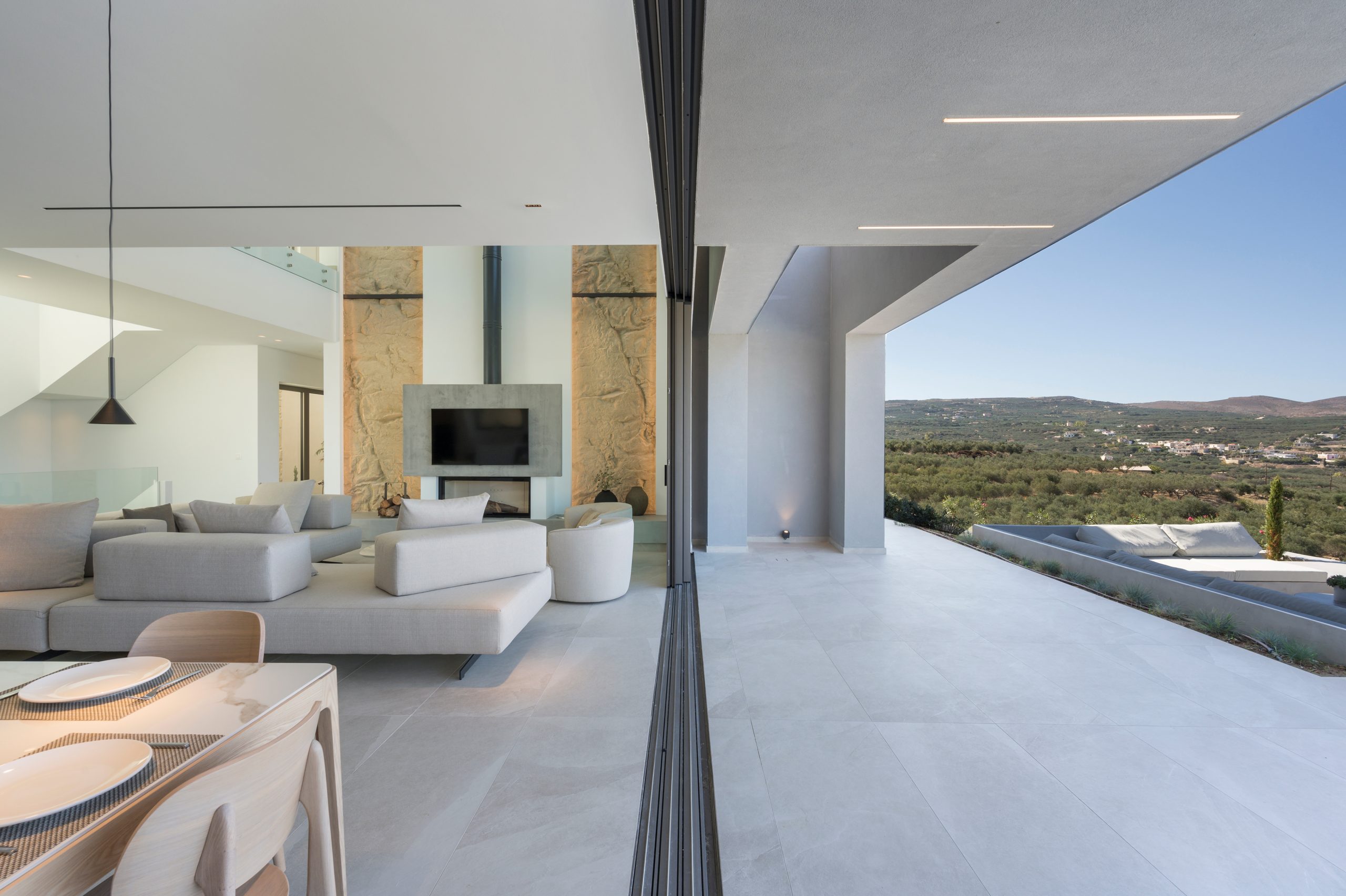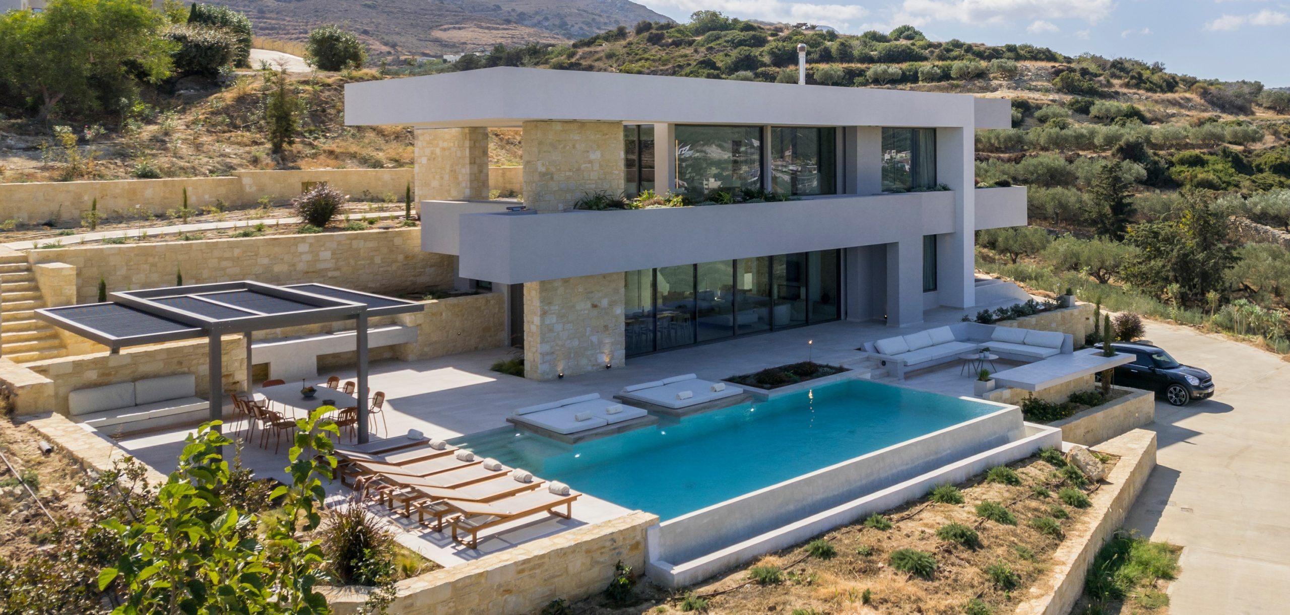It is a residence of 185,77 m² in the area ”Ag. Konstantinos”, outside the village ”Ag.Georgios”, in the municipality of Kissamos, Chania. The study concerns the construction of a two-storey house with a basement and a swimming pool. Considering the pronounced differences in altitude of the terrain, the architectural study aims to ensure the best possible adaptation of the building to its surroundings. The house is placed parallel to the curves of the ground. On the main level there are the common areas and on the first floor the private ones. The everyday space has a double height and the resident can see into it from the floor corridor. Architectural morphological elements are used to form the facades, which provide continuity between the two levels of the building and the roof.
